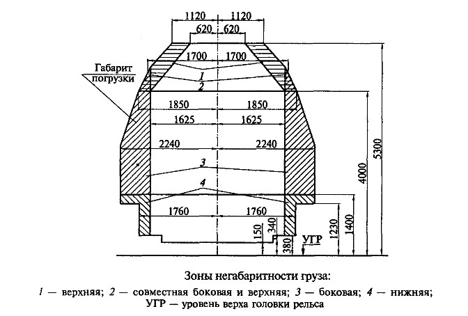 Подвижной состав габарита 1-Т допускается к обращению по всем путям общей сети железных дорог, подъездным путям и путям промышленных предприятий, а подвижной состав габарита Т — по путям общей сети железных дорог, подъездным путям промышленных предприятий, сооружения и устрой-ства на которых отвечают требованиям габаритов С (с очертанием верхней части для неэлектрифицированных линий) и Сп. Габариты 1-ВМ, 0-ВМ, 02-ВМ и 03-ВМ установлены для подвижного состава, допускаемого к обращению по железным дорогам колеи как 1520 (1524), так и 1435 мм.